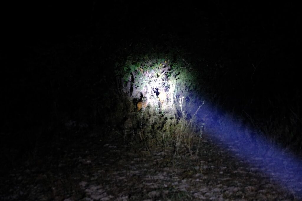 It was almost not possible to make it to the night safari after our speedy dinner. After the elephants had entered the lodge earlier in the evening, they proceeded to block our exit from both sides. The rangers and waiters tried to shine lights to encourage them to move, but the elephants are completely wild so they didn’t want to risk them stampeding so we mostly had to be patient.