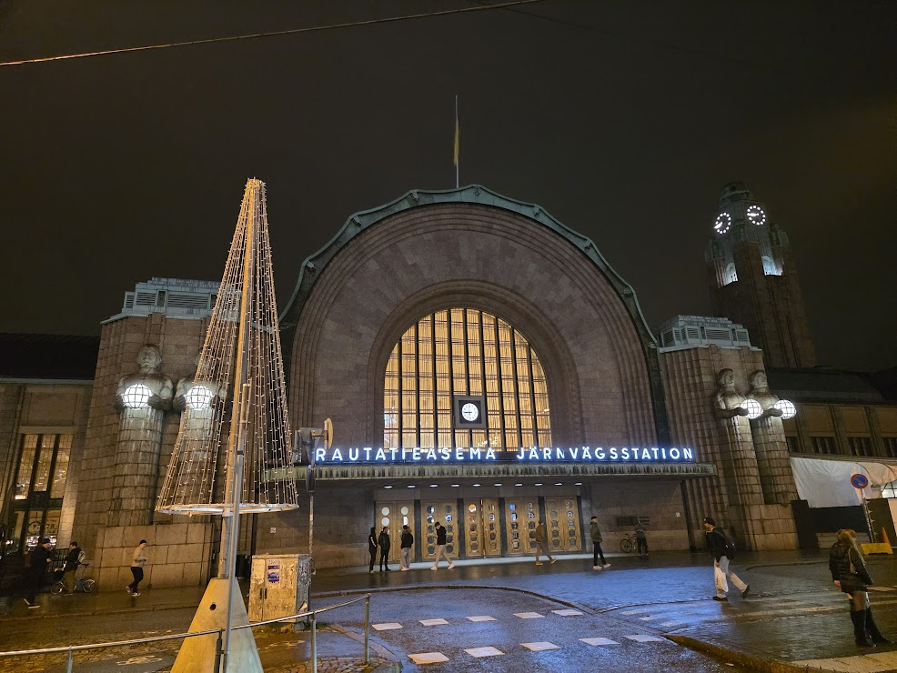 Travel into Helsinki was ridiculously easy, we walked straight out into arrivals, straight towards some train symbols, down two very long escalators with opera music booming and a projector displaying said opera.