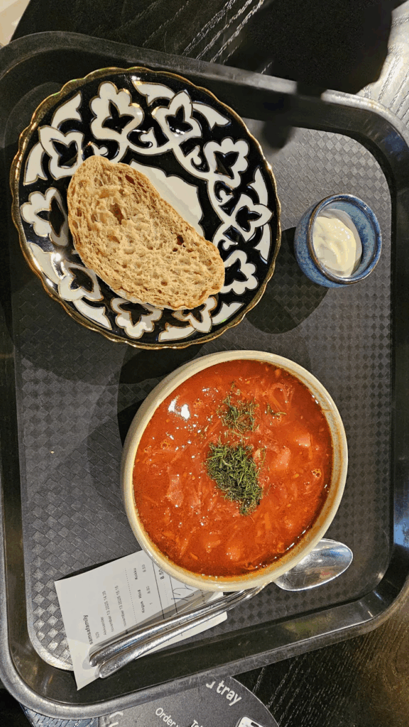 After our visit, the rain was even worse so we popped into a Bolt to the Viru mall again, selecting a margherita pizza and a chicken borscht to share between us. The sourdough pizza crusts mixed with the borscht were a killer combo! It was absolutely pouring it down outside and we didn’t want to risk our valuables outside so we mooched around the mall and picked up a mini prosecco, rum and coke and energy drinks to enjoy back in the food hall. By the time we’d done all of this it was time to pick up our luggage and start making our way to the port.