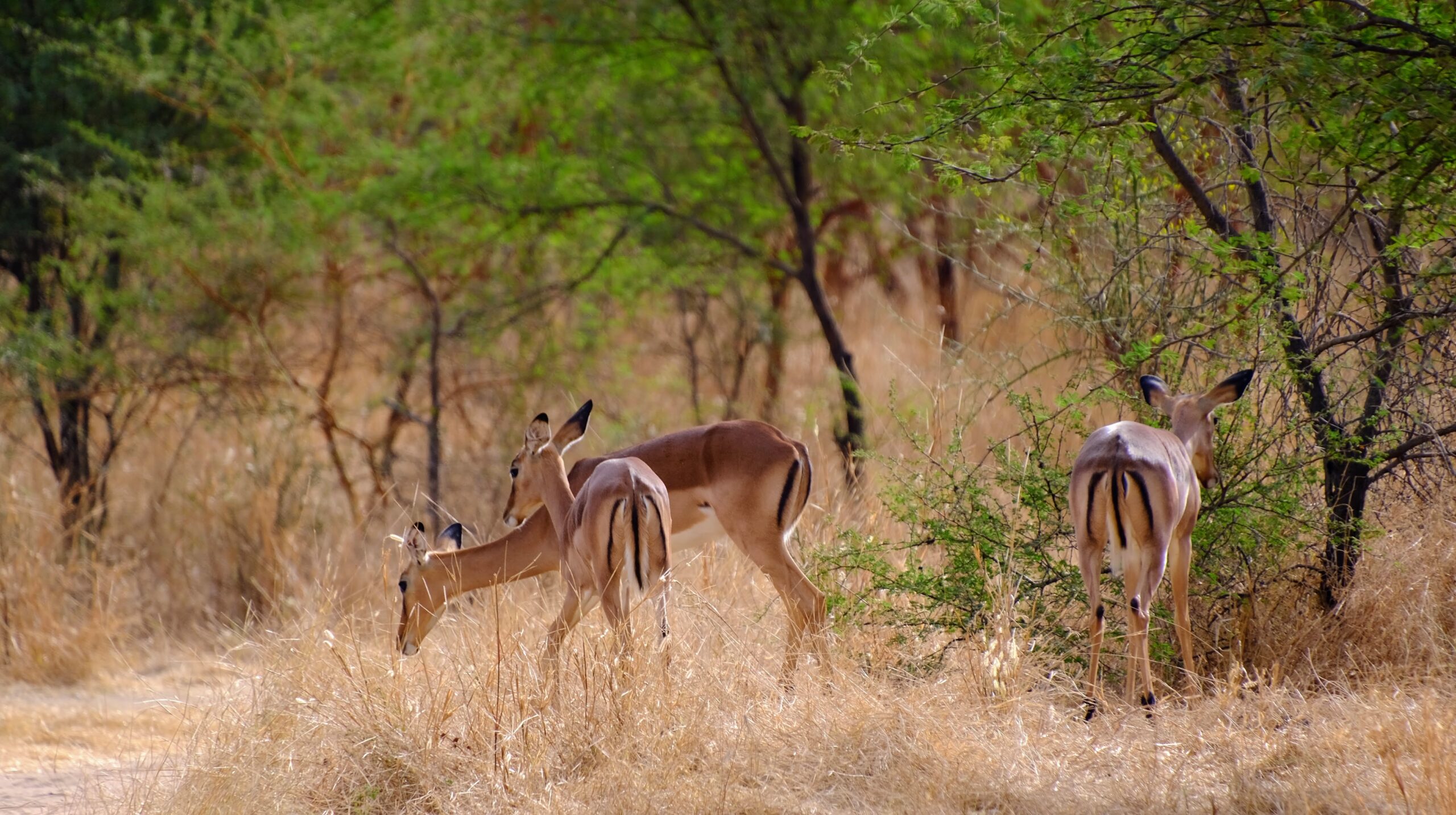 We then started to approach water with a large group of impalas behind us, three giraffes next to it, crocodiles on the opposite bank and an ostrich to the far right away from the bank. Two of the giraffes were play fighting, gently swinging their necks against each other, then slowly wrapping them around the other until they got bored and chomped away at a nearby tree. It was at this point I realised I’d accidentally set my shutter speed super-high and that any zoomed in photos I’d taken were probably trash – whoops! If you were wondering why they are so dark/HDR to this point that’s why.